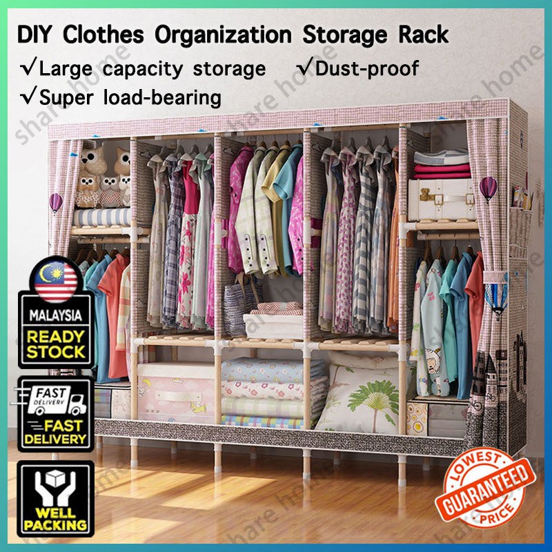 Wardrobe Almari Baju Rak Baju Diy Fold Portable Clothes Organization Storage Rack Cabinet Clothes Rack Bedroom Furnit Shopee Malaysia